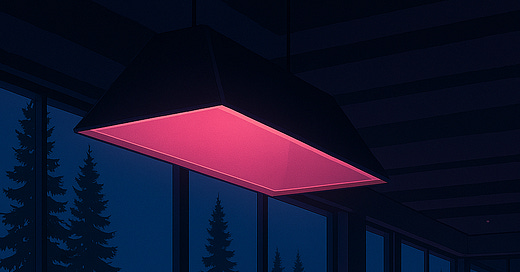 Outside, a gust of wind rattles the thin motel door, but the threat of being followed feels muted. Cole’s pulse slows, matching the subdued beep from AURI. He notices the device’s reflection in the TV screen—AURI has seen them through so many anxious moments, but it also stands as a reminder of how reliant they’ve been on technology.